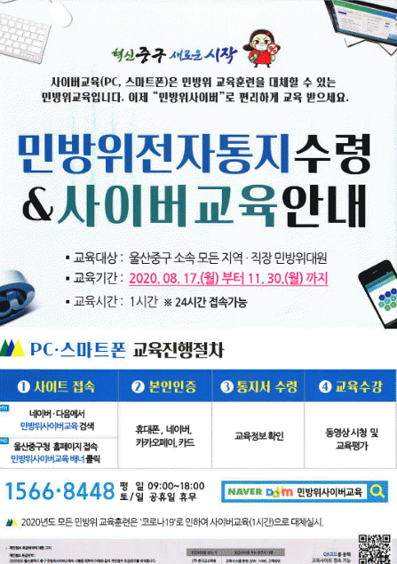 ±³À°Àº ¿ï»ê Áß±¸ ȨÆäÀÌÁö ¹è³Ê³ª Æ÷ÅлçÀÌÆ®¿¡¼ ¹Î¹æÀ§ »çÀ̹ö±³À°¼¾Å͸¦ Á¢¼ÓÇØ º»ÀÎ ÀÎÁõ ÈÄ¿¡ ¼ö°ÇÒ ¼ö ÀÖ´Ù.
