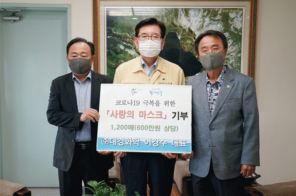 ÀÌ ³¯ °æ±âµµ Æ÷õ½Ã¿¡ ÀÖ´Â ÇÕ¼º ¼öÁö¡¤°í¹« Á¦Á¶¾÷üÀÎ ¢ß´ë°æÈÇÐÀº Äڷγª19ÀÇ ÀçÈ®»êÀ» ¹æÁöÇϰíÀÚ Æò¼Ò Ä£¹ÐÇÏ°Ô ±³·ùÇÏ´ø ÀÌ¿ë½Ä ÈÖ°æ2µ¿ ÁÖ¹ÎÀÚÄ¡À§¿øÀåÀ» ÅëÇØ µ¿´ë¹®±¸¿¡ 3DÄɾ½ºÅ© 1,200¸Å(600¸¸ ¿ø »ó´ç)À» ±âºÎÇß´Ù.