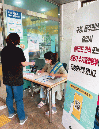 µ¿ Áֹμ¾ÅÍ ¹æ¹®°´Àº ÈÞ´ëÆù ¾ÛÀ¸·Î QRÄڵ带 ¹ß±Þ¹Þ¾Æ û»ç ÃâÀÔ±¸ÀÇ ÅÂºí¸´ PCȸ鿡 ½ºÄµ ÈÄ ÃâÀÔÇØ¾ß ÇÑ´Ù. ¹æ¹®±â·ÏÀº Äڷγª19 È®ÁøÀÚ°¡ ¹ß»ýÇÒ ¶§ ¿ªÇÐÁ¶»ç ±âÃÊÀÚ·á·Î Ȱ¿ëµÈ´Ù. ±¸´Â QRÄÚµå »ç¿ë¿¡ Àͼ÷ÇÏÁö ¾Ê°Å³ª ½º¸¶Æ®ÆùÀÌ ¾ø´Â ±¸¹ÎµéÀ» À§ÇØ ±âÁ¸ ¼ö±âÀåºÎµµ º´ÇàÇÑ´Ù´Â ¹æÄ§ÀÌ´Ù. ´ÙÀ½´Þ 1ÀϺÎÅÍ´Â °ºÏ±¸Ã» û»ç±îÁö È®´ë ¿î¿µÇÒ ¿¹Á¤ÀÌ´Ù.
