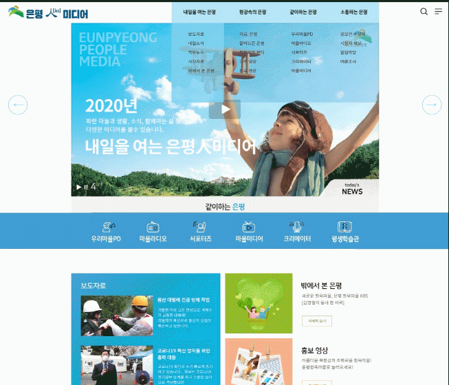¡®ÀºÆòìÑ(in) ¹Ìµð¾î¡¯ÀÇ Àǹ̴ ¸»±×´ë·Î ÀºÆò±¸¿¡¼ »ý»êµÇ´Â °¢Á¾ ¹Ìµð¾î(¿µ»ó, À̹ÌÁö, ÅØ½ºÆ®)¸¦ ¼ºñ½ºÇÏ´Â ¹Ìµð¾î Æ÷ÅÐ »çÀÌÆ®´Ù. ±¸Á¤È«º¸, ±³À°¿µ»ó, »ýȰÁ¤º¸, ±ä±ÞÀç³ »óȲ µî ÀºÆò±¸¹ÎÀ» À§ÇÑ ¸ðµç Á¤º¸¸¦ ´ãÀ» ¿¹Á¤ÀÌ´Ù.
