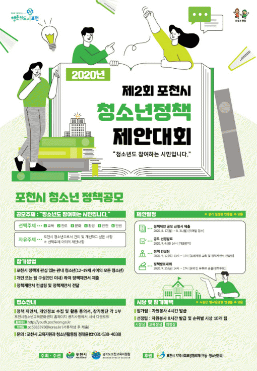 À̹ø °ø¸ðÀüÀº¡¸Ã»Âü½Ã¡¹¡®Ã»¼Ò³âµµ Âü¿©ÇÏ´Â ½Ã¹ÎÀÔ´Ï´Ù.¡¯¶ó´Â ¸íĪÀ¸·Î ±³À°, Áø·Î, ¹®È, ȯ°æ, ¾ÈÀü, À뱂 µî 6°³ ºÐ¾ß¿¡ ´ëÇÑ ¼±ÅÃÁÖÁ¦¿Í ±× ¿Ü Æ÷õ½Ã û¼Ò³âÀÇ ÀÏ»ó»ýȰ ¼Ó¿¡¼ ÇÊ¿äÇÑ ÀÚÀ¯ÁÖÁ¦·Î û¼Ò³âÀÇ ´Ù¾çÇÑ Á¤Ã¥ Á¦¾ÈÀ» °ø¸ð ¼±Á¤ÇÑ´Ù.