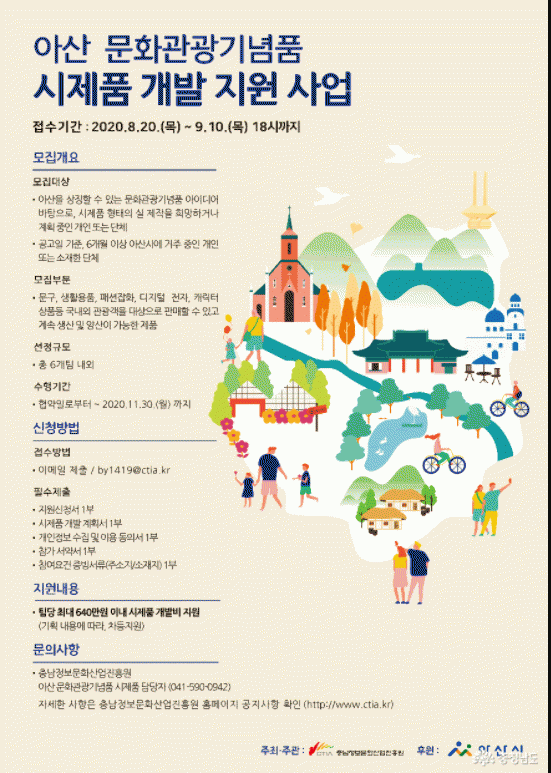 ¾Æ»ê½Ã(½ÃÀå ¿À¼¼Çö)¿Í Ãæ³²Á¤º¸¹®È»ê¾÷ÁøÈï¿ø(¿øÀå ¸Íâȣ, ÀÌÇÏ ÁøÈï¿ø)Àº ´ÙÀ½´Þ 10ÀϱîÁö ¡®2020³â ¾Æ»ê½Ã ¹®È¡¤°ü±¤±â³äǰ ½ÃÁ¦Ç° °³¹ßÁö¿ø¡¯ Âü¿©ÀÚ¸¦ ¸ðÁýÇÑ´Ù°í 20ÀÏ ¹àÇû´Ù.