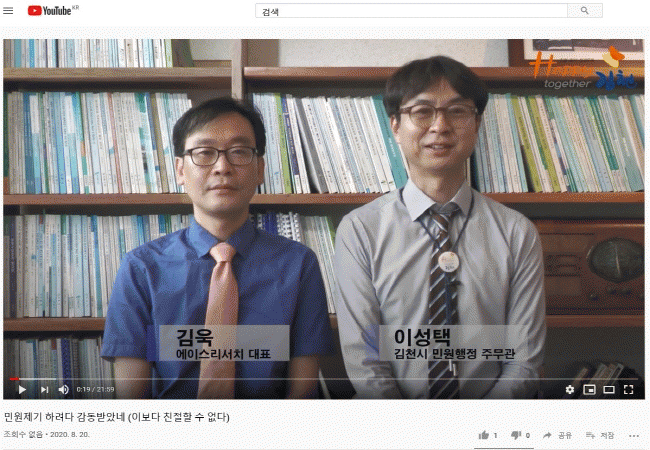 [´ëÇÑ¿©¼ºÀϺ¸]±èõ½Ã(½ÃÀå ±èÃæ¼·)´Â ÀüÁ÷¿øÀ» ´ë»óÀ¸·Î À¯Æ©ºê ±èõ½Ã ä³ÎÀ» ÅëÇØ ¡°ºÒ¸¸ Á¦·Î, °¨µ¿ ¾÷¡± Ä£Àý±³À°À» ½Ç½ÃÇß´Ù. ÀÌ ¹ø Ä£Àý±³À°Àº ÀüÈÄ£Àýµµ Çâ»óÀ» À§ÇÑ Ä£Àý±³À°À¸·Î½á ¿¡À̽º¸®¼Ä¡ ±è¿í ´ëÇ¥À̻縦 ÃʺùÇÏ¿© °í°´Áß½ÉÀÇ Ä£ÀýÀǽÄÀ» ±â¸£±â À§ÇØ ¸¶·ÃÇÏ¿´´Ù. ³ô¾ÆÁö´Â ½Ã¹ÎÀÇ ±â´ëÄ¡¸¦ °¨¾ÈÇÏ¿© ü°¨ÇÒ ¼ö Àִ ģÀýÇÑ ÇàÁ¤¼ºñ½º¸¦ Á¦°øÇÒ °ÍÀ¸·Î ±â´ëÇÑ´Ù.