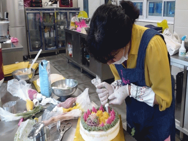 ÀÌ ³¯, ¾È»ó¹Ì °»çÀÇ ÄÉÀÌÅ© Á¦ÀÛ ±³À°À» ¹ÞÀº ÈÄ, ÀÚ¿øºÀ»çÀÚµéÀÌ ¾Ó±ÝÀ¸·Î ²Ù¹Î ¶± ÄÉÀÌÅ©¸¦ ¼Õ¼ö Á¦ÀÛÇÏ¿´À¸¸ç ¸¶À½À» ´ãÀº Ä«µå¸¦ ÀÛ¼ºÇÏ´Â ½Ã°£µµ °¡Á³´Ù.
