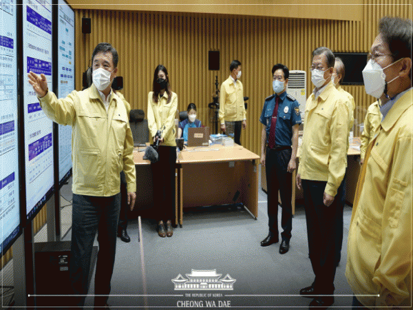 ÀÌ¾î ¹®ÀçÀÎ ´ëÅë·ÉÀº "¿ì¸® K-¹æ¿ª ¼º°øÀÇ ÇÙ½ÉÀº ¹ÐÁ¢ Á¢ÃËÀÚ¸¦ ½Å¼ÓÇÏ°Ô È®ÀÎÇϰí, °Ë»çÇϰí, °á°ú¿¡ µû¶ó °Ý¸®Çϰųª Ä¡·áÇÏ´Â °Í"Àε¥, Áö±Ý ÀϺο¡¼ À̸¦ ¹æÇØÇÏ´Â ÀϵéÀÌ ¹ú¾îÁö°í ÀÖ´Ù°í ÁöÀûÇß´Ù. ±×·¯¸é¼ "¼¿ï½Ã°¡ °¡Áö°í ÀÖ´Â ÇàÁ¤·ÂÀ» Ãѵ¿¿øÇØ Áֽñ⠹ٶõ´Ù"°í ÁÖ¹®Çß´Ù.