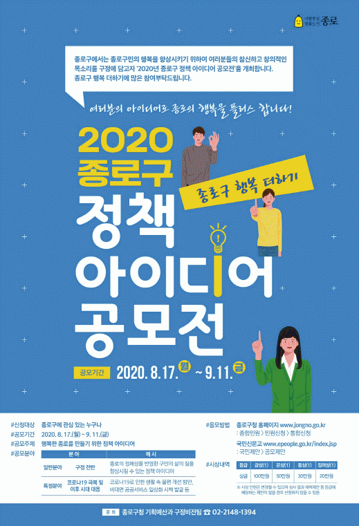 ±è¿µÁ¾ ±¸Ã»ÀåÀº ¡°°ø¸ðÀüÀ» ÅëÇØ Á¾·ÎÀÇ Á¤Ã¼¼ºÀ» ³ì¿©³½ Âü½ÅÇÏ°í ´Ù¾çÇÑ ¾ÆÀ̵ð¾î¸¦ ¹Þ¾Æ ±¸Á¤ ¿î¿µ¿¡ ¹Ý¿µÇϰíÀÚ ÇÑ´Ù¡±¸é¼ ¡°Á¾·Î±¸¹ÎÀÇ ÇູÀ» ³ôÀÌ´Â ÀÇ¹Ì ÀÖ´Â °ø¸ðÀüÀÌ µÉ ¼ö ÀÖµµ·Ï °ü½É ÀÖ´Â ºÐµéÀÇ Àû±ØÀûÀÎ Âü¿©¸¦ ¹Ù¶õ´Ù.¡±°í ÀüÇß´Ù.