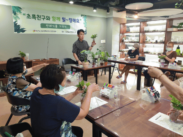 ÀÌ¿Í °ü·ÃÇÏ¿© ºñ»ê2.3µ¿ Áö¿ª»çȸº¸ÀåÇùÀÇü´Â ¸¶À»ÀÇ ÀÚ¶û°Å¸®ÀÎ ´Þ¼ºÅ伺¸¶À» °ñ¸ñÁ¤¿øÀÇ °ø¹æÀ» Ȱ¿ëÇÏ¿© Äڷγª19¿Í Æø¿°À¸·Î ¿ÜÃâÀÌ ¾î·Á¿î ½Ã±â¿¡ »çȸÀû °í¸³°¡±¸ÀÇ Á¤¼Àû ¾ÈÁ¤À» µ½°íÀÚ Áý¾È¿¡¼ ½Ç³»Á¤¿øÀ» °¡²Ü ¼ö ÀÖµµ·Ï ¼ö°æÀç¹è ȺÐ, °øÁß°ÉÀÌ ÈºÐ(hanging plant) µîÀ» ¸¸µé°í ½Ä¹° Ű¿ì±â¿¡ ´ëÇÑ ¼ö¾÷À» ÁøÇàÇß´Ù.