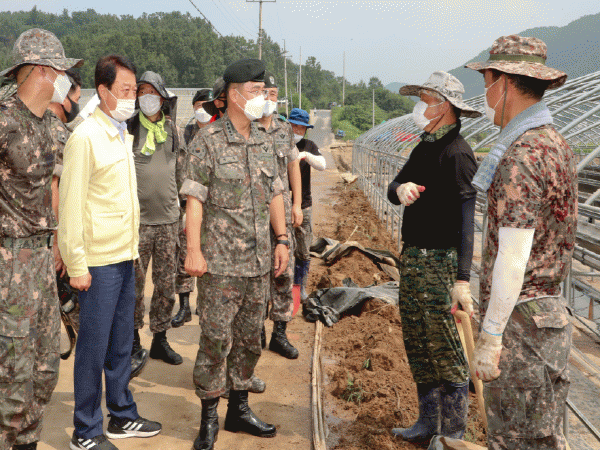 24ÀÏ ¿ÀÀü °æ³² ÇÕõ±º ½ÖÃ¥¸é ÇÇÇØ º¹±¸ ÇöÀåÀ» ãÀº ¼¿í Âü¸ðÃÑÀåÀº ¹«´õ¿î ³¯¾¾¿¡µµ ºÒ±¸ÇÏ°í ´ë¹ÎÁö¿ø¿¡ ¸ÅÁøÇϰí ÀÖ´Â À庴µéÀ» °Ý·ÁÇß´Ù.