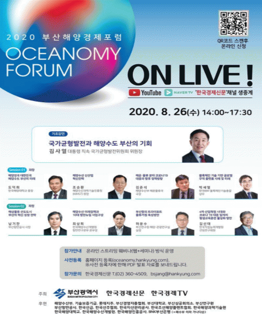 »çÀüµî·ÏÀº 2020 ºÎ»êÇØ¾ç°æÁ¦Æ÷·³ ȨÆäÀÌÁö(oceanomy.hankyung.com)¸¦ ÅëÇØ ´©±¸³ª °¡´ÉÇϸç, À¯Æ©ºê ¹× ³×À̹öTVÀÇ ¡®Çѱ¹°æÁ¦½Å¹®¡¯ ä³ÎÀ» ÅëÇØ ½Ç½Ã°£ ½ÃûÀÌ °¡´ÉÇÏ´Ù.