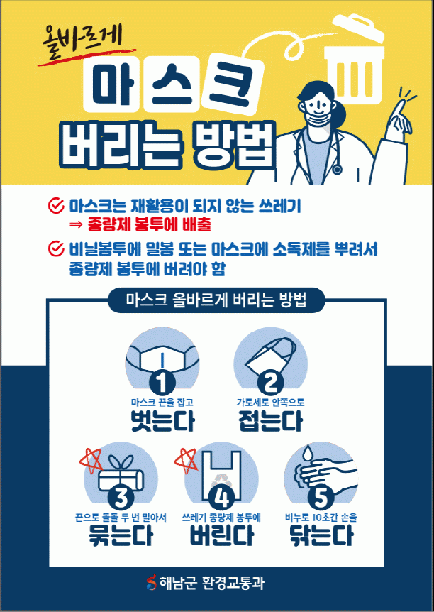 ȯ°æºÎÀÇ ÀçȰ¿ëǰ ºÐ¸®¹èÃâ °¡À̵å¶óÀο¡ µû¶ó ¸ðµç Á¾·ùÀÇ ¸¶½ºÅ©´Â¡®ÀÏ¹Ý ¾²·¹±â¡¯·Î ºÐ·ùµÇ¾î, ¸¶½ºÅ©¸¦ »ç¿ëÇÑ ÈÄ¿¡´Â ¹Ýµå½Ã Á¾·®Á¦ ºÀÅõ¿¡ ³Ö¾î ¼Ò°¢ ó¸®ÇØ¾ß ÇÑ´Ù. ºÎÁ÷Æ÷ ¸¶½ºÅ©³ª ¸é ¸¶½ºÅ©, µ§Å»¸¶½ºÅ©, º¸°Ç¿ë ¸¶½ºÅ© µî ÀçÁú¿¡ »ó°ü¾øÀÌ ÇØ´çµÈ´Ù.