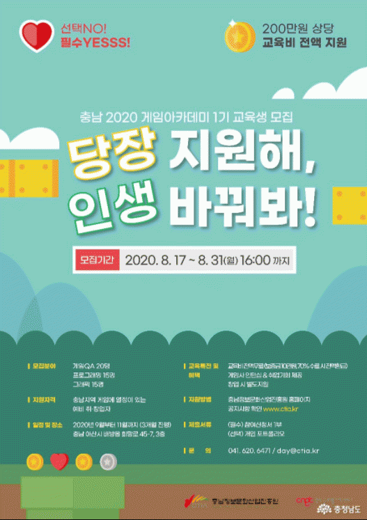 ¡®2020 °ÔÀÓ ¾ÆÄ«µ¥¹Ì¡¯ ÇÁ·Î±×·¥Àº Ãæ³² ³» °ÔÀӺо߿¡ ¿Á¤ÀÌ ÀÖ´Â ¿¹ºñ Ã롤â¾÷ÀÚ¶ó¸é ´©±¸³ª Áö¿øÇÒ ¼ö ÀÖ´Ù. QA, ±×·¡ÇÈ, ÇÁ·Î±×·¡¹Ö µî 3°³ÀÇ ±³À°°úÁ¤¿¡¼ ÃÑ 50¸íÀ» ¼±¹ßÇÑ´Ù.