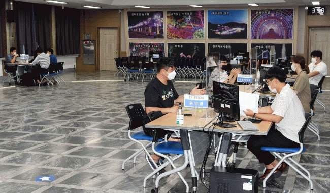 ƯÈ÷ »ç¹«½Ç ³» ¿ÜºÎÀÎ ÃâÀÔ Á¦ÇÑÀ» À§ÇØ ±×µ¿¾È û»ç ³» ´Ù¸ñÀû½Ç¿¡ ¸¶·ÃµÆ´ø ¹Î¿øÁ¢°ß½ÇÀ» ´ëȸÀǽǷΠ¿Å°Ü È®´ë ¿î¿µÇÑ´Ù. »õ·Î ¸¶·ÃÇÑ ¹Î¿øÁ¢°ß½ÇÀº 2m ÀÌ»ó °Å¸®µÎ±â ÀÌÇàÀÌ ¿ëÀÌÇÒ »Ó¸¸ ¾Æ´Ï¶ó »ç¹«¿ëPC¿Í ÇàÁ¤ÀüÈ ±¸Ãà µî ÇöÀå¿¡¼ ¹Î¿øÃ³¸®°¡ °¡´ÉÇϵµ·Ï Çß´Ù.