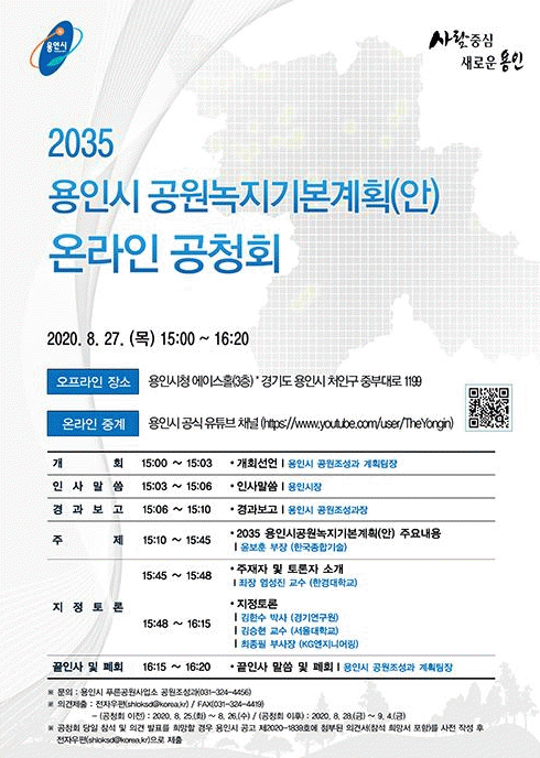 À̳¯ °øÃ»È¸´Â ½ÃÀÇ Áß¡¤Àå±â °ø¿ø¡¤³ìÁö È®Ãæ ¹æ¾ÈÀ̳ª Á¤ºñ¿¡ ´ëÇÑ ½ÃÀÇ ºñÀü°ú °èȹ µîÀ» ´ãÀº ¡®2035³â ¿ëÀνà °ø¿ø¡¤³ìÁö ±âº»°èȹ(¾È)¡¯À» ¼Ò°³Çϰí Àü¹®°¡ ÁöÁ¤Åä·Ð°ú ½Ã¹Î ÀǰßÀ» ûÃëÇÏ´Â ¼øÀ¸·Î ÁøÇàµÈ´Ù.