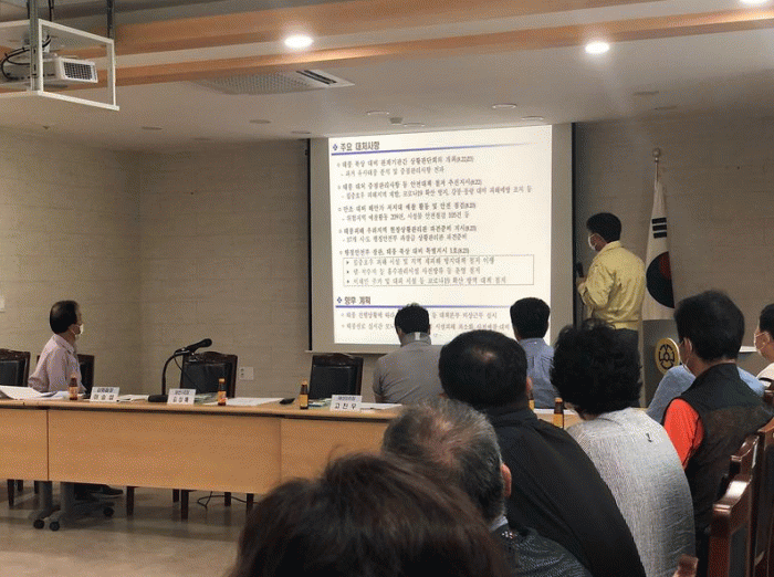 º» ȸÀÇ¿¡¼ ÅÂdz ÁøÇະ ±º¹Î Çൿ¿ä·ÉÀ» °¢ ¸¶À» ÀÌÀåµé²² ÀüÆÄÇß´Ù. ÁÖ¿ä ÇÙ½É Çൿ¿ä·ÉÀ¸·Î´Â ÅÂdz¿¹º¸ ½Ã¿¡´Â ¿ÜÃâÀ» ÀÚÁ¦ÇÏ°í ¿¬¼¼ ¸¹Àº ¾î¸£½Å µîÀº ¼ö½Ã·Î ¾ÈºÎ¸¦ È®ÀÎÇØ¾ß ÇÑ´Ù. ÅÂdz Ưº¸ Áß¿¡´Â ½Ç³»¿¡¼ ¹®°ú â¹®À» ´Ý°í ¿ÜÃâÀ» ÇÏÁö ¾Ê¾Æ¾ß ÇÑ´Ù. ƯÈ÷ ³íµÏÀ̳ª ¹°²¿ÀÇ Á¡°ËÀ» À§ÇØ Àý´ë ³ª°¡¼´Â ¾ÈµÈ´Ù. ¶ÇÇÑ ´ëÇÇ ±Ç°í¸¦ ¹ÞÀ» °æ¿ì Áï½Ã ¾ÈÀüÇÑ Áö¿ªÀ¸·Î ÁÖº¯¿¡ ÀÖ´Â »ç¶÷µé°ú ÇÔ²² ´ëÇÇÇØ¾ß ÇÑ´Ù. ÅÂdzÀÌ Áö³ª°£ ÈÄ¿¡´Â ÀÌ¿ôµé°ú ÇÔ²² ÇÇÇØ »óȲÀ» È®ÀÎÇϰí À¾»ç¹«¼Ò¿¡ ÇÇÇØ¸¦ ½Å°íÇØ º¸¼ö?º¸°À» Çϵµ·ÏÇØ¾ß ÇÑ´Ù.