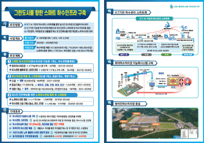 ÁÖ¿ä »ç¾÷³»¿ëÀº ¡ã½º¸¶Æ® ÇϼöÀÎÇÁ¶ó(ȸ¾ßÇϼöó¸®Àå Áö´ÉÈ, Çϼö°ü¸Áºí·ÏÈ) ¡ãÇϼöó¸®Àå È®Ãæ(½Å¼³ 1°³¼Ò, Áõ¼³ 5°³¼Ò, °³·® 1°³¼Ò) ¡ã³ëÈÄÇϼö°ü·Î Á¤ºñ µîÀ̸ç, ¿À´Â 2026³â±îÁö 5,135¾ï ¿ø(½Ãºñ 3,206¾ï, ±¹ºñ 1,929¾ï)ÀÇ »ç¾÷ºñ°¡ ÅõÀԵȴÙ.