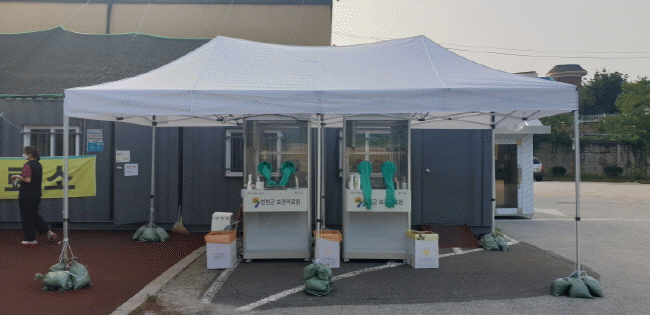 Åõ¸íÇÑ ¼ÒÀç·Î ¸¸µé¾îÁø À̵¿½Ä ¿öÅ·½º·ç °ËüäÃëºÎ½º´Â ±âÁ¸¿¡ ¿î¿µÇϰí ÀÖ´Â ¼±º°Áø·á¼Ò¿Í ´Þ¸® ÀÇ·áÁø°ú °Ë»ç ´ë»óÀÚ »çÀ̸¦ ºÐ¸®Çϰí Àå°©ÀÌ ´Þ¸° ±¸¸ÛÀ» ÅëÇØ °Ëü¸¦ äÃëÇϵµ·Ï ¸¸µé¾îÁ³´Ù. ÀÇ·áÁøÀº °Ë»ç ´ë»óÀÚ¿Í Á÷Á¢ Á¢ÃËÇÒ Çʿ䰡 ¾ø¾î ·¹º§D º¸È£º¹À» ÀÔÁö ¾Ê°íµµ °Ë»ç°¡ °¡´ÉÇÏ´Ù.