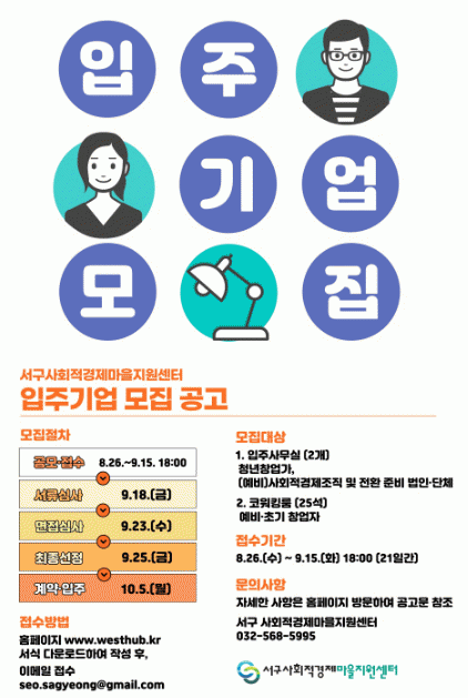 Á¢¼ö ±â°£Àº 9¿ù 15ÀϱîÁöÀ̸ç, ¼¾ÅÍ È¨ÆäÀÌÁö¿¡¼ ¼½ÄÀ» ´Ù¿î¹Þ¾Æ ÀÛ¼ºÇÑ ÈÄ¿¡ À̸ÞÀÏ·Î Á¢¼ö°¡ °¡´ÉÇÏ´Ù. ¼·ù ¹× ¸éÁ¢ ½É»ç¸¦ ÅëÇØ ÀÔÁÖ±â¾÷ 2°³¼Ò¿Í ÄÚ¿öÅ··ë 25¼®(1Àδç 1¼® / 1ÆÀ´ç ÃÖ´ë 4¼®)À» ¼±¹ß ÇÒ ¿¹Á¤ÀÌ´Ù.