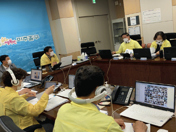 ¿µ»óȸÀÇ´Â Äڷγª ¹æ¿ª Áöħ¿¡ µû¶ó ±¸Ã»ÀåÀ» ºñ·ÔÇØ °£ºÎ °ø¹«¿ø°ú µ¿Àå 60¿© ¸íÀÌ ¿Â¶óÀÎÀ¸·Î Âü¿©ÇØ Äڷγª ¹æ¿ªÈ°µ¿ °ü·Ã ºÎ¼ Á¶Ä¡»çÇ×À» È®ÀÎÇÏ´Â µî ¹æ¿ª´ëÃ¥À» ³íÀÇÇß´Ù.