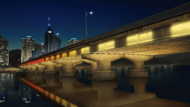 ÁÖ¿ä »ç¾÷³»¿ëÀº ±³·® ±¸Á¶¹°ÀÇ Ãø¸é¿¡ ¹Ì¼¼¸ÕÁö ¾Ë¸² Á¶¸í°ú °©Ãµ µÐÄ¡¿¡ À½¾ÇÀÌ È帣°í ÀÚµ¿À¸·Î ¹à±âÁ¶Àý µÇ´Â ½º¸¶Æ®°¡·Îµî µî ¾ß°£°æ°üÁ¶¸íÀ» ¼³Ä¡ÇØ Ã·´Ü°úÇеµ½ÃÀÇ À̹ÌÁö¸¦ ¿¬ÃâÇÑ´Ù.