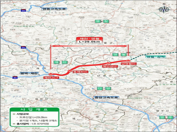 ÀÌ¿¡ µû¶ó Á¦Ãµ½Ã ±Ý¼º¸é°ú °¿øµµ ¿µ¿ù±º ¿µ¿ùÀ¾À» ¿¬°áÇÏ´Â ÃÑ ¿¬Àå 29km¿¡ ÃÑ »ç¾÷ºñ 1Á¶ 979¾ï ¿øÀ» ÅõÀԵǴ »ç¾÷ÀÌ ÃßÁøµÇ¸ç, 2031³â °³ÅëÀ» ¸ñÇ¥·Î ¸ÕÀú ³»³âºÎÅÍ ±âº»¼³°è¿¡ Âø¼öÇÏ°Ô µÈ´Ù.