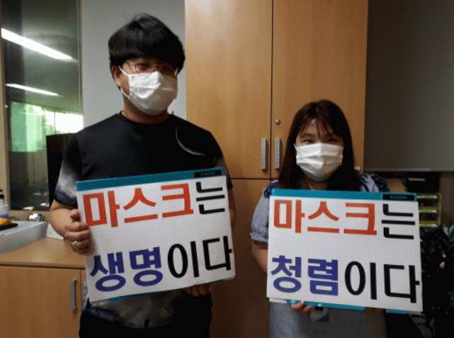 ÀÌ¿¡ °¡Á·¿©¼º°ú´Â û·ÅÁÖ°£À» ¸Â¾Æ À̽ñâÀÇ Ã»·ÅÀº ¡®¿Ã¹Ù¸¥ ¸¶½ºÅ©¾²±â¡¯¶ó´Â ¸Þ½ÃÁö¸¦ Àü´ÞÇϰí, Àü Á÷¿øÀÇ ¿Ã¹Ù¸¥ ¸¶½ºÅ©¾²±â¸¦ À¯µµÇÏ¿© ¸ðµÎ°¡ °Ç°Çϰí ÇູÇÑ ÀÏ»óÀÌ Á¶±ÝÀÌ¶óµµ »¡¸® ã¾Æ¿À±â¸¦ ¼Ò¸ÁÇß´Ù.