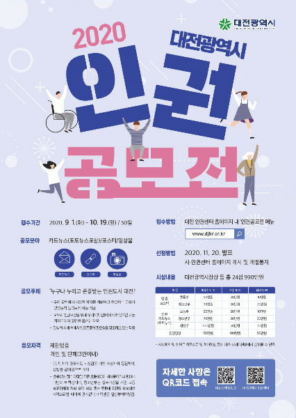 °ø¸ðºÎºÐÀº À뱂 Æ÷½ºÅÍ¡¤Ä«µå´º½º¡¤UCC µî 3°³ ºÎ¹®À̸ç, Àαǿ¡ °ü½É ÀÖ´Â »ç¶÷À̶ó¸é Áö¿ª¿¡ °ü°è¾øÀÌ ´©±¸³ª ÀÀ¸ð°¡ °¡´ÉÇϰí, 9¿ù 1ÀϺÎÅÍ 10¿ù 19ÀϱîÁö 50Àϰ£ ´ëÀü½ÃÀαǼ¾ÅÍ È¨ÆäÀÌÁö(www.djhr.or.kr)¸¦ ÅëÇØ Á¢¼ö°¡ ÁøÇàµÈ´Ù.