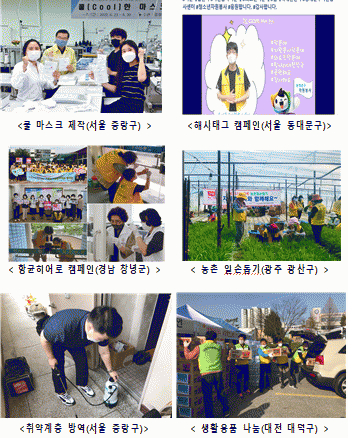 ÀÌÀç°ü ÇàÁ¤¾ÈÀüºÎ Áö¹æÀÚÄ¡ºÐ±Ç½ÇÀåÀº ¡°»çȸÀû °Å¸®µÎ±â¡¯, ¡®°³Àι濪 ¼öÄ¢ ÁöŰ±â¡¯ µîµµ ÀÚ¿øºÀ»ç Ȱµ¿¿¡ ÇØ´çµÈ´Ù.¡±¸ç ¡°¾î·Á¿ï ¶§¸¶´Ù ³î¶ó¿î °øµ¿Ã¼ ÀǽÄÀ» ¹ßÈÖÇϸç À§±â¸¦ ±Øº¹Çؿ °æÇèÀ» µÇ»ì·Á, ÇϹݱ⿡µµ Äڷγª19ÀÇ ÀçÈ®»êÀ» ¸·´Âµ¥ ±¹¹ÎÀÌ ÈûÀ» º¸ÅÂÁÖ½Ã±æ ºÎŹµå¸°´Ù.¡±°í ¸»Çß´Ù.