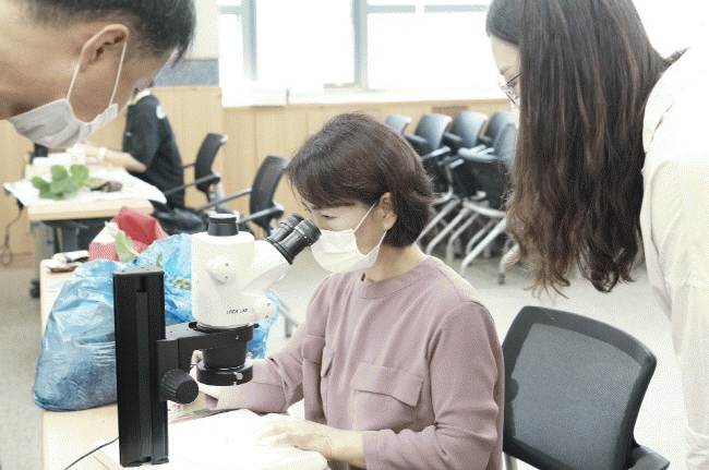 ÀÌ¿¡ ¿ÏÁÖ±º³ó¾÷±â¼ú¼¾ÅÍ´Â ³ó°¡¿¡¼ µþ±â¹¦¸¦ °¡Á®¿À¸é Çö¹Ì°æÀ¸·Î °Ë»ç¸¦ ½Ç½Ã, ²É´«ºÐÈ ¿©ºÎ¸¦ È®ÀÎÇØ ºÐÈÁøÇà Á¤µµ¿¡ µû¶ó Á¤½Ä½Ã±â¸¦ °áÁ¤ÁöÀ» ¼ö ÀÖµµ·Ï µ½°í ÀÖ´Ù.
