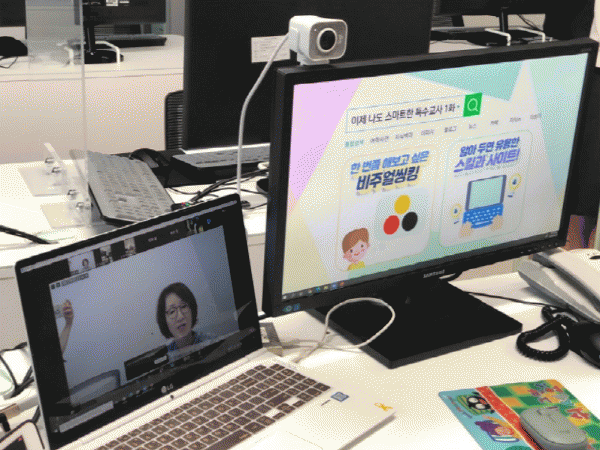 °»ç°¡ Ä· ¾Õ¿¡¼ ÁÜ ÇÁ·Î±×·¥À» ÀÌ¿ëÇÑ ¿Â¶óÀÎ ½Ç½Ã°£ °ÀǸ¦ ÁøÇàÇϰí, ¿¬¼ö¸¦ Èñ¸ÁÇÏ´Â ±³»çµéÀÌ ±³À°Ã»¿¡ ¿ÀÁö ¾Ê°í °¢ ±³½Ç¿¡¼ ¿Â¶óÀÎ ¿¬¼ö ÇÁ·Î±×·¥¿¡ Âü¿©ÇØ °»ç¿Í ¿µ»óÀ¸·Î ¸¸³ °ÍÀÌ´Ù.
