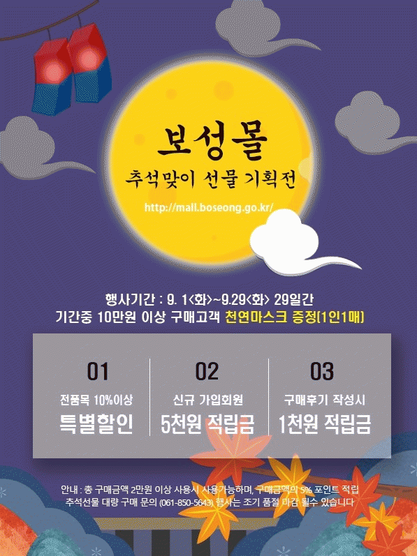 À̹ø ÇÒÀÎÇà»ç´Â ¡®º¸¼º¸ô¡¯À» ÅëÇØ ³óƯ»ê¹°À» ±¸ÀÔÇÏ´Â ¸ðµç °í°´À» ´ë»óÀ¸·Î ÁøÇàµÇ¸ç, Çà»ç ±â°£ Áß Àüǰ¸ñ 10% ÀÌ»ó ÇÒÀÎ, ½Å±Ôȸ¿ø 5,000¿ø Æ÷ÀÎÆ® Àû¸³, »óǰ Èıâ ÀÛ¼º ½Ã 1,000¿ø Æ÷ÀÎÆ® Àû¸³Á¦°ø µîÀÇ ´Ù¾çÇÑ ÇýÅÃÀ» Á¦°øÇÑ´Ù. 10¸¸¿ø ÀÌ»ó ±¸¸Å ½Ã¿¡´Â õ¿¬¿°»ö ¸¶½ºÅ© 1ÀÎ 1¸Å¸¦ ÁõÁ¤ÇÑ´Ù.