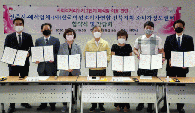 ±è½Â¼ö ÀüÁÖ½ÃÀå°ú ÁÖ¿ä 7°³ ¿¹½Ä¾÷ü ´ëÇ¥, ±èº¸±Ý (»ç)Çѱ¹¿©¼º¼ÒºñÀÚ¿¬ÇÕ ÀüºÏÁöȸ ¼ÒºñÀÚÁ¤º¸¼¾ÅÍ ¼ÒÀåÀº 2ÀÏ Çö´ëÇØ»ó 8Ãþ ȸÀǽǿ¡¼ ¡®Äڷγª19 »óȲ¿¡ µû¸¥ ¿¹½ÄÀå ÀÌ¿ë °ü·Ã »ó»ýÇù¾à¡¯À» ü°áÇß´Ù.