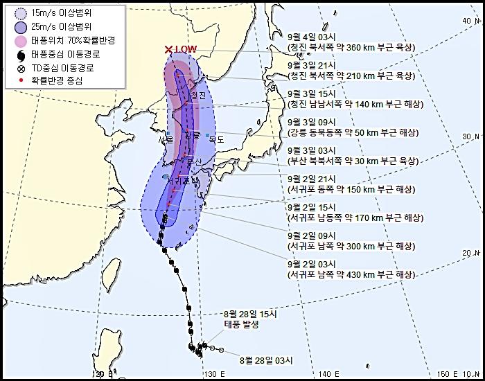 ÅÂdzÀº ¿ÀÈÄ 9½Ã²² ¼±ÍÆ÷ µ¿ÂÊ ¾à 150§° ºÎ±Ù ÇØ»óÀ» °ÅÃÄ ¿À´Â 3ÀÏ ¿ÀÀü ºÎ»ê Àαٿ¡ »ó·úÇÒ °ÍÀ¸·Î ¿¹º¸µÆ´Ù.