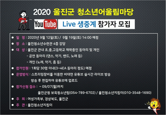 ¿Â¶óÀΠû¼Ò³â¾î¿ï¸²¸¶´çÀº ÃʵîÇлýÀÌ»óÀÇ °ü³» û¼Ò³âÀÌ¸é ´©±¸³ª Âü°¡ °¡´ÉÇϰí, °³ÀÎÀ̳ª µ¿¾Æ¸® ´ÜÀ§·Î ´í½º, ¹êµå, ÇÕâ µî ´Ù¾çÇÑ °ø¿¬À¸·Î ÀÚ½ÅÀÇ ²Þ°ú ³¢¸¦ ¸¾²¯ ¹ß»êÇÒ ¼ö ÀÖ´Ù.