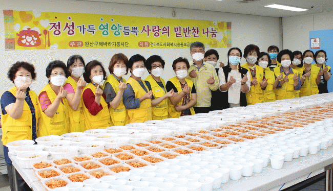 ÇØ¹Ù¶ó±âºÀ»ç´Ü ȸ¿ø 20¿© ¸íÀº ÀüÅë½ÃÀå¿¡¼ ±¸ÀÔÇÑ Àç·á·Î ºÒ°í±â, ¹«»ýä, ÄáÀÚ¹Ý µî Á¤¼ºÀ» ´ÙÇØ ¹Ø¹ÝÂùÀ» Á÷Á¢ ¸¸µé¾î ¸öÀÌ ºÒÆíÇÏ¿© À½½Ä Á¶¸®¿¡ ¾î·Á¿òÀ» °Þ°í ÀÖ´Â °¡±¸¿¡ Àü´ÞÇÏ¿´´Ù. ¶ÇÇÑ Äڷγª È®»êÀ¸·Î ´õ¿í ¾î·Á¿òÀÌ Ä¿Áø ¼Ò¿Ü°èÃþ¿¡°Ô ¾ÈºÎ È®ÀΡ¤¸»¹þ µÇ¾î Áֱ⠵î Á¤¼Àû Áö¿øÀ» ÇÏ¿© ¶æ±íÀº ½Ã°£À» º¸³Â´Ù.
