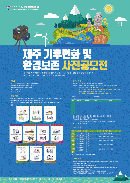 °ø¸ðºÎ¹®Àº Á¦ÁÖÀÇ ±âÈĺ¯È ¸ð½À ¹× °³¼±¹æ¾È, ±âÈĺ¯È ¿µÇâ°ú ½ÇÅÂ, ´ëÀÀ¹æ¾È, Á¦ÁÖ ÀÚ¿¬È¯°æ ¸ð½À, ȯ°æº¸Á¸ÀÇ Á߿伺, Á¦ÁÖȯ°æÀÇ Áö¼Ó°¡´É¹ßÀü ¹æ¾È µîÀ¸·Î Á¦Áֽà Áö¿ª¿¡¼ ÃÔ¿µÇÑ »çÁøÀ» Á¦ÃâÇÏ¸é µÈ´Ù.