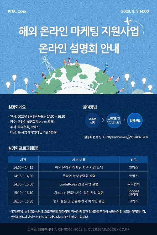 ³²µ¿±¸´Â Çѱ¹¹«¿ªÇùȸ ÀÎõÁö¿ªº»ºÎ¿Í Çù¾÷ÇØ 1:1 È»ó»ó´ã, ¿Â¶óÀÎ Ç÷§Æû(TradeKorea, Shopee) ÀÔÁ¡, ÀÎÇ÷ç¾ð¼ ¸¶ÄÉÆÃ, ÇöÁö ¼ÒºñÀÚ ¹ÝÀÀ ¼³¹®Á¶»ç µîÀ» Æ÷ÇÔÇÏ´Â ÇØ¿Ü ¿Â¶óÀÎ ¸¶ÄÉÆÃ ÆÐŰÁö ÇÁ·Î±×·¥À» Áö¿øÇÒ ¿¹Á¤ÀÌ´Ù.