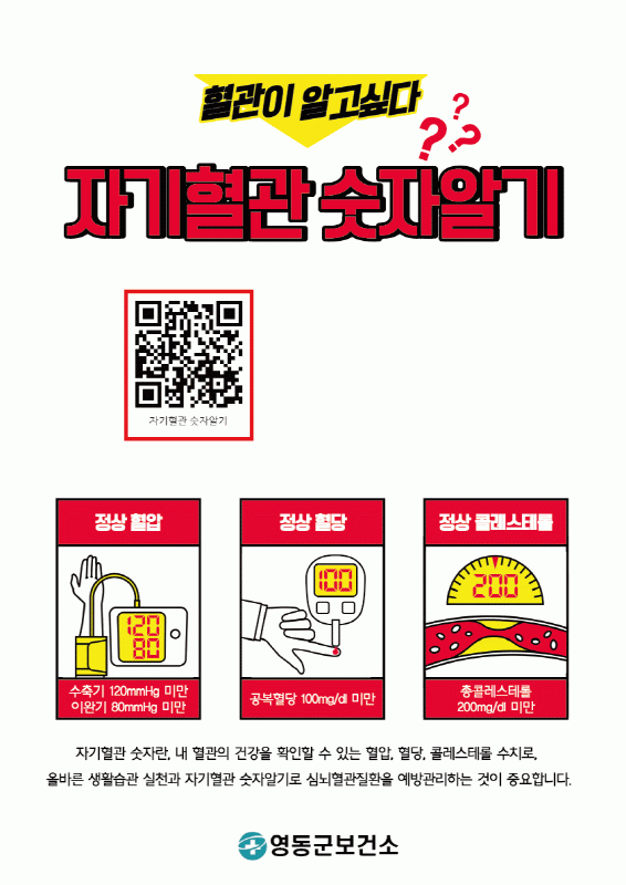ÀÌ ¡¸ÀÚ±âÇ÷°ü ¼ýÀÚ ¾Ë±â¡¹Ä·ÆäÀÎÀº ³úÁ¹Áß°ú ½É±Ù°æ»ö µîÀÇ ½É³úÇ÷°üÁúȯÀÇ ¿¹¹æ°ü¸®¸¦ À§ÇØ ½º½º·Î Ç÷¾Ð, Ç÷´ç, ÄÝ·¹½ºÅ×·Ñ ¼öÄ¡¸¦ ¾Ë°í °ü¸®ÇØ ½É³úÇ÷°üÁúȯ¿¹¹æ ¹× °ü¸®ÀÇ Á߿伺À» ¾Ë¸®±â À§ÇÑ È«º¸ Ä·ÆäÀÎÀÌ´Ù.