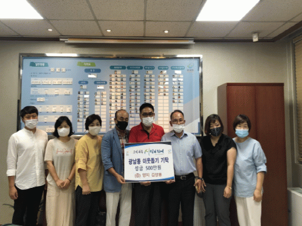 ±¤³²µ¿¿¡ À§Ä¡ÇÑ ¢ß¾çÁö ±è»ó¿ë ´ëÇ¥´Â Áö³ 2ÀÏ ±¤³²µ¿ÇàÁ¤º¹Áö¼¾Å͸¦ ¹æ¹®ÇØ °ü³» ¾î·Á¿î ÀÌ¿ôÀ» µ½´Âµ¥ »ç¿ëÇØ ´Þ¶ó¸ç ¼º±Ý 500¸¸¿øÀ» ±âŹÇß´Ù.