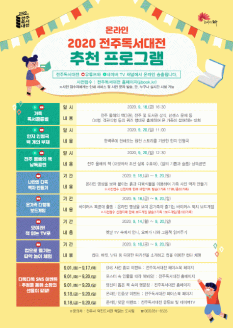 ÇÑÆí ºñ´ë¸é ¿Â¶óÀΠüÇè ÇÁ·Î±×·¥ µî ¿ÃÇØ ÀüÁÖµ¶¼´ëÀüÀÇ ÁÖ¿ä ÇÁ·Î±×·¥Àº º¸´Ù ¸¹Àº ½Ã¹ÎµéÀÌ ÇÔ²² Áñ±æ ¼ö ÀÖµµ·Ï ÀüÁÖµ¶¼´ëÀü ȨÆäÀÌÁö¿Í À¯Æ©ºê ¹× ³×À̹öTV ä³Î µîÀ» ÅëÇØ ¼ÛÃâµÉ ¿¹Á¤ÀÌ´Ù.