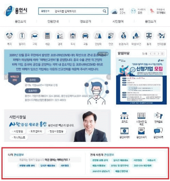 ¹æ¹®ÀÚ º°·Î ÀÚÁÖ ÀÌ¿ëÇÏ´Â ¸Þ´º¸¦ 1½Ã°£ ´ÜÀ§·Î °»½ÅÇØ º¸¿©ÁÖ´Â ¡®³ªÀÇ °ü½ÉÁ¤º¸¡¯¿Í Àüü ¹æ¹®ÀÚ°¡ ÀÚÁÖ ÀÌ¿ëÇÏ´Â ¸Þ´º¸¦ ºÐ¼®ÇØ º¸¿©ÁÖ´Â ¡®Àüü »ç¿ëÀÚ °ü½ÉÁ¤º¸¡¯·Î ±¸¼ºµÆ´Ù. ÀÌ ¼ºñ½º´Â ½Ã ȨÆäÀÌÁö ½Ã¹Î½ÃÀå½Ç ÄÜÅÙÃ÷ ¹Ù·Î ¾Æ·¡¿¡ ÀÖ´Ù.