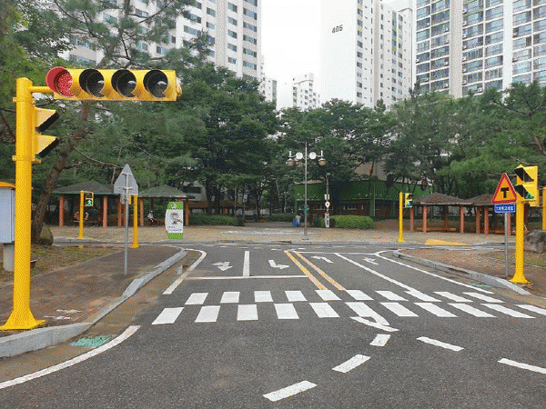 ½Ç¿Ü üÇèÀå¿¡ ¼³Ä¡µÈ º¸Çà½ÅÈ£µî 12´ë, Â÷·®½ÅÈ£µî 4´ë¿Í öµµ °Ç³Î¸ñ ½ÅÈ£µîÀ» Àü·Â¼Ò¸ð°¡ ÀûÀº LED·Î ¹Ù²Ù°í ½ÅÈ£µî Ä¿¹ö¸¦ ³ë¶õ»öÀ¸·Î ±³Ã¼ÇÏ¿© ¾î¸°ÀÌ º¸È£±¸¿ªÀÇ »ó¡¼ºÀ» Á¦°íÇÏ¿´´Ù.