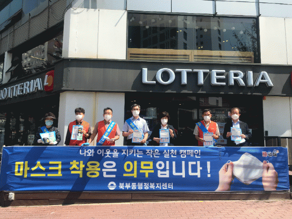 ºÏºÎµ¿ÇàÁ¤º¹Áö¼¾ÅÍ¿Í ÀÚ»ý´Üü ȸ¿øµéÀº ¸¶½ºÅ© 4,500ÀåÀ» ¹æ¿ª¼öÄ¢ È«º¸Áö¿Í ÇÔ²² Áֹε鿡°Ô ³ª´²ÁÖ¸ç, ¸¶½ºÅ© Âø¿ëÀÇ Á߿伺°ú ¿Ã¹Ù¸¥ ¸¶½ºÅ© Âø¿ë¹ý µîÀ» ¼³¸íÇß´Ù.