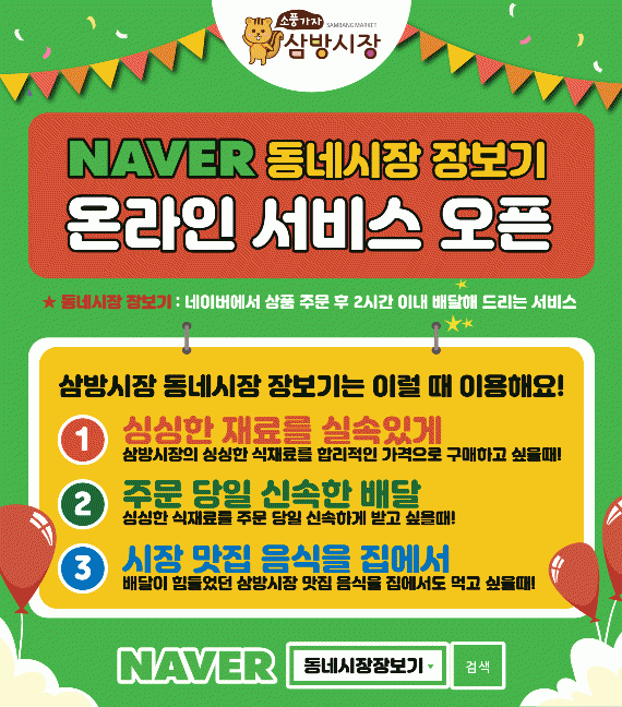 ±èÇØ½Ã´Â »ï¹æ½ÃÀåÀÌ °æ³²µµ °ø¸ð»ç¾÷ÀÎ 2020³â ÀüÅë½ÃÀå ¿Â¶óÀÎ Áö¿ø»ç¾÷¿¡ ¼±Á¤µÅ µµ¿Í ½ÃÀÇ Áö¿øÀ» ¹Þ¾Æ Áö³´Þ 21ÀϺÎÅÍ ³×À̹ö ¡®µ¿³×½ÃÀå À庸±â¡¯¿¡¼ ¿Â¶óÀÎ ¹è¼Û¼ºñ½º¸¦ Á¦°ø ÁßÀ̶ó°í ¹àÇû´Ù.