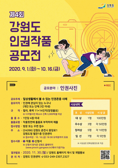 ¼ö»óÀÛÀº 11¿ù 30ÀÏ °¿øµµ ȨÆäÀÌÁö¸¦ ÅëÇØ ¹ßÇ¥Çϰí, 12¿ù ¼¼°èÀαǼ±¾ð 72Áֳ⠱â³ä °¿ø ÀαÇÁÖ°£¿¡ Àü½ÃÇÒ ¿¹Á¤ÀÌ´Ù.