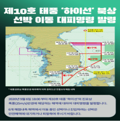 6ÀÏ ¿ÀÈÄ 6½ÃºÎÅÍ ¡®¼±¹Ú À̵¿ ¹× ´ëÇÇ ¸í·É¡¯À» ¹ß·ÉÇÔ¿¡ µû¶ó ÅÂdz °æ·ÎÀÇ ÆøÇ³¹Ý°æÀÎ À§ÇèÇØ¿ª¿¡¼ À̵¿ ÁßÀ̰ųª, ÁøÀÔÇÏ´Â ¸ðµç ¼±¹ÚÀº ¾ÈÀüÇØ¿ªÀ¸·Î ÇÇÇ×ÇØ¾ß ÇÑ´Ù.