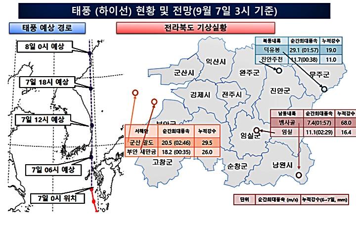 ÁÖ¿ä ÁöÁ¡º° ÅÂdz ÃÖ±ÙÁ¢ ¿¹»ó ½ÃÁ¡(°Å¸®)Àº ¡ã³²¿ø ¿ÀÀü 9½Ã(190§° µ¿ÂÊ) ¡ãÀå¼ö ¿ÀÀü 10½Ã(180§° µ¿ÂÊ) ¡ãÀüÁÖ ¿ÀÀü 10½Ã(220§° µ¿ÂÊ) ¡ã±º»ê ¿ÀÀü 10½Ã(250§° µ¿ÂÊ) ¡ã¹«ÁÖ ¿ÀÀü 11½Ã(170§° µ¿ÂÊ) µîÀÌ´Ù.