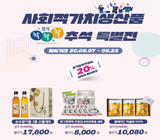 À̹ø Ãß¼® Ưº°ÀüÀº ¿ÃÇØ Äڷγª19 È®»ê µîÀ¸·Î Áö¿ª°æÁ¦¿¡ ½Ã¸§ÀÌ ±íÀº ¸¸Å, °æ±âµµ »çȸÀû°¡Ä¡ »ý»êǰ °øµ¿ºê·£µå ¡®ÂøÂøÂø¡¯À» ÅëÇØ ÁÖº¯°ú ÀÌ¿ôÀ» »ý°¢ÇÏ´Â »ç·Á ±íÀº ¡®ÂøÇÑ ¼Òºñ¡¯¸¦ Ȱ¼ºÈÇϰíÀÚ ±âȹµÆ´Ù.