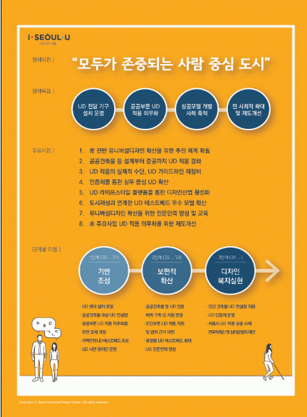 ½Ã´Â Áö³ 2010³â ´ç½Ã »ý¼ÒÇß´ø ¡®À¯´Ï¹ö¼³µðÀÚÀΡ¯À» ¼±µµÀûÀ¸·Î µµÀÔÇϰí '16³â¿£ ¡¸À¯´Ï¹ö¼³µðÀÚÀÎ µµ½ÃÁ¶¼º ±âº» Á¶·Ê¡¹¸¦ Á¦Á¤Çß´Ù. '17³â¿£ ½Ã°¡ ±³Åë¾àÀÚÀÇ À̵¿ÆíÀǸ¦ À§ÇÑ ¹ý°ú Á¶·Ê, ¹«Àå¾Ö °Ç¹°¡¤°ø¿ø µî Èð¾îÁ®ÀÖ´ø ¹ý°ú °ü·Ã ÁöħÀ» ÃѸÁ¶óÇÑ ¡®¼¿ï½Ã À¯´Ï¹ö¼³µðÀÚÀÎ ÅëÇÕ °¡À̵å¶óÀΡ¯µµ °³¹ßÇØ Àû¿ëÇØ¿À°í ÀÖ´Ù.