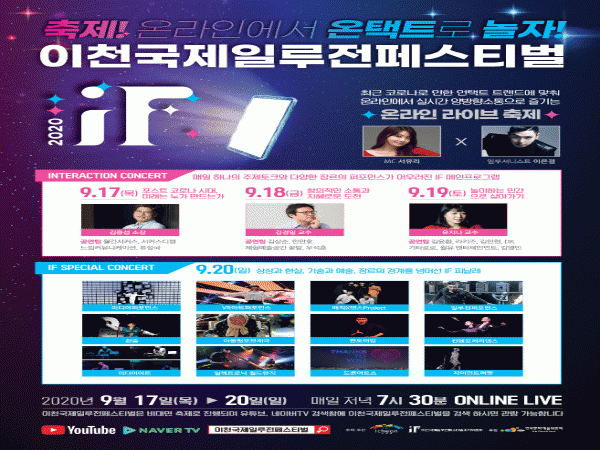 ÃàÁ¦ÀÇ ¸¶Áö¸· ³¯ÀÎ 9¿ù 20ÀÏÀº Àú³á 7½Ã 30ºÐºÎÅÍ ¼³ºÀ°ø¿ø ¾ß¿Ü°ø¿¬Àå¿¡¼ ÀÏ·çÀüÆä½ºÆ¼¹úÀÇ ÇÏÀ̶óÀÌÆ®·Î¼ ´Ù¾çÇÑ À帣ÀÇ °ø¿¬ÀÚµéÀÌ ÇÔ²² ¸¸µå´Â Ưº°ÇÑ ¹«´ë°¡ ¿Â¶óÀÎ Ç÷§ÆûÀ» ÅëÇØ »ýÁß°èµÈ´Ù.