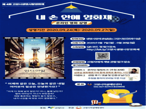 Âü¿© Èñ¸ÁÀÚ´Â 9¿ù 20ÀϱîÁö QRÄÚµå ¹× ¸µÅ© Á¢¼Ó(http://bit.ly/°í¾ç½Ã»ý¸í»ç¶û¿µÈÁ¦)À» ÅëÇØ ½ÅûÇÏ¸é ¸ðµç ½ÅûÀÚ¿¡°Ô ¹®ÀÚ ¶Ç´Â À̸ÞÀÏ·Î °³º° °ü¶÷¸µÅ©¸¦ »çÀü ¹ß¼Û, 9¿ù 24ÀÏ ¿ÀÀü 9½ÃºÎÅÍ 9¿ù 27ÀÏ ÀÚÁ¤ ¿Â¶óÀÎÇ÷§ÆûÀ» ÅëÇØ °¢°¢ ¿µÈ¸¦ °ü¶÷Åä·Ï ÇÑ´Ù.